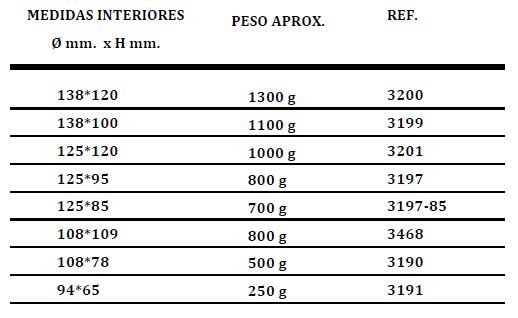 Modelo cilíndrico liso, con esquinas ligeramente redondeadas, en el fondo interior del molde y en la tapa. Curvatura ligera.