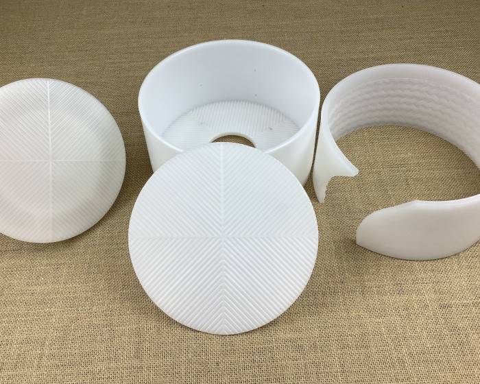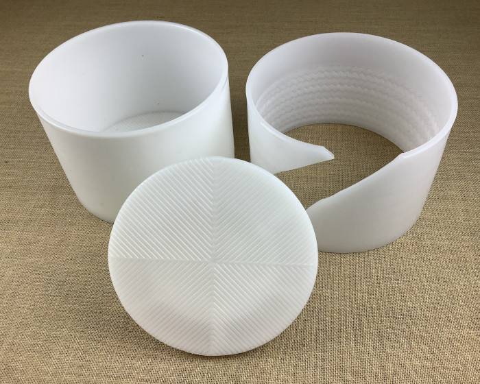 La pleita es una pieza que encaja en el interior del molde y facilita el marcado del queso en su contorno, al mismo tiempo que después del prensado ayuda a la salida del mismo.