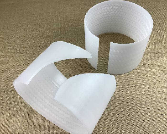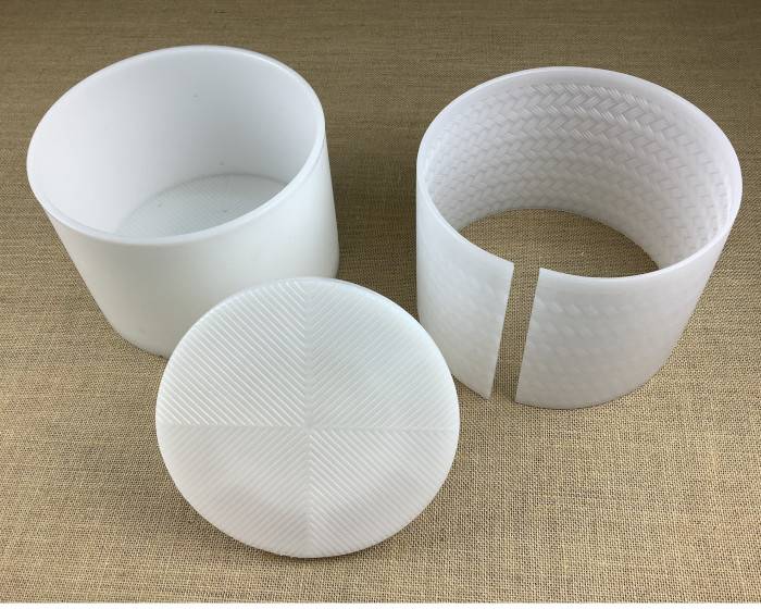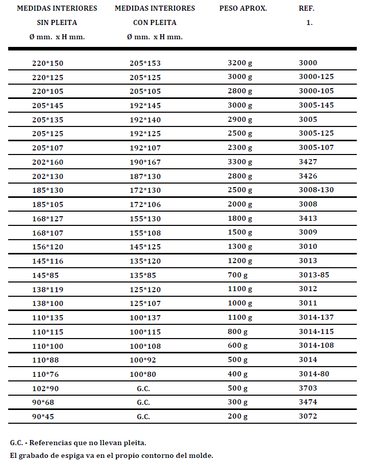 Se ha diseñado una nueva pleita fina adaptable a varias de las referencias expuestas. La terminación recta (no curvada) además de facilitar la extracción de esta pieza (tanto por el grosor como por la ausencia del curvado), permite dar más dimisión al queso (tanto en diámetro como en altura) pudiendo hacer piezas de mayor tamaño y/o evitar sobrellenados, para aquellos productores que les es preciso. Esta pleita puede alcanzar hasta 16,5 cm. de altura y 15 cm. de dibujo. Consultar precio y referencias en las que es posible su incorporación.